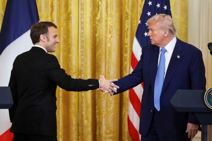 Ωστόσο, πίσω από τις φιλοφρονήσεις και τις χειραψίες, η ένταση εμφανίστηκε όταν άγγιξαν ουσιαστικά θέματα. Όταν ο Τραμπ ισχυρίστηκε λανθασμένα ότι η ευρωπαϊκή βοήθεια στην Ουκρανία ήταν απλώς δάνειο, ο Μακρόν τον διέκοψε για να τον διορθώσει.
