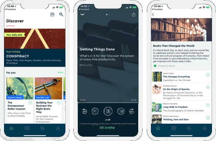 Η εφαρμογή Blinkist συγκεντρώνει τις κύριες και καίριες πληροφορίες 5.000+ επιστημονικών και φιλοσοφικών βιβλίων του κόσμου και τις προσφέρει στο κοινό σε μορφή audiobook διάρκειας 15 λεπτών.