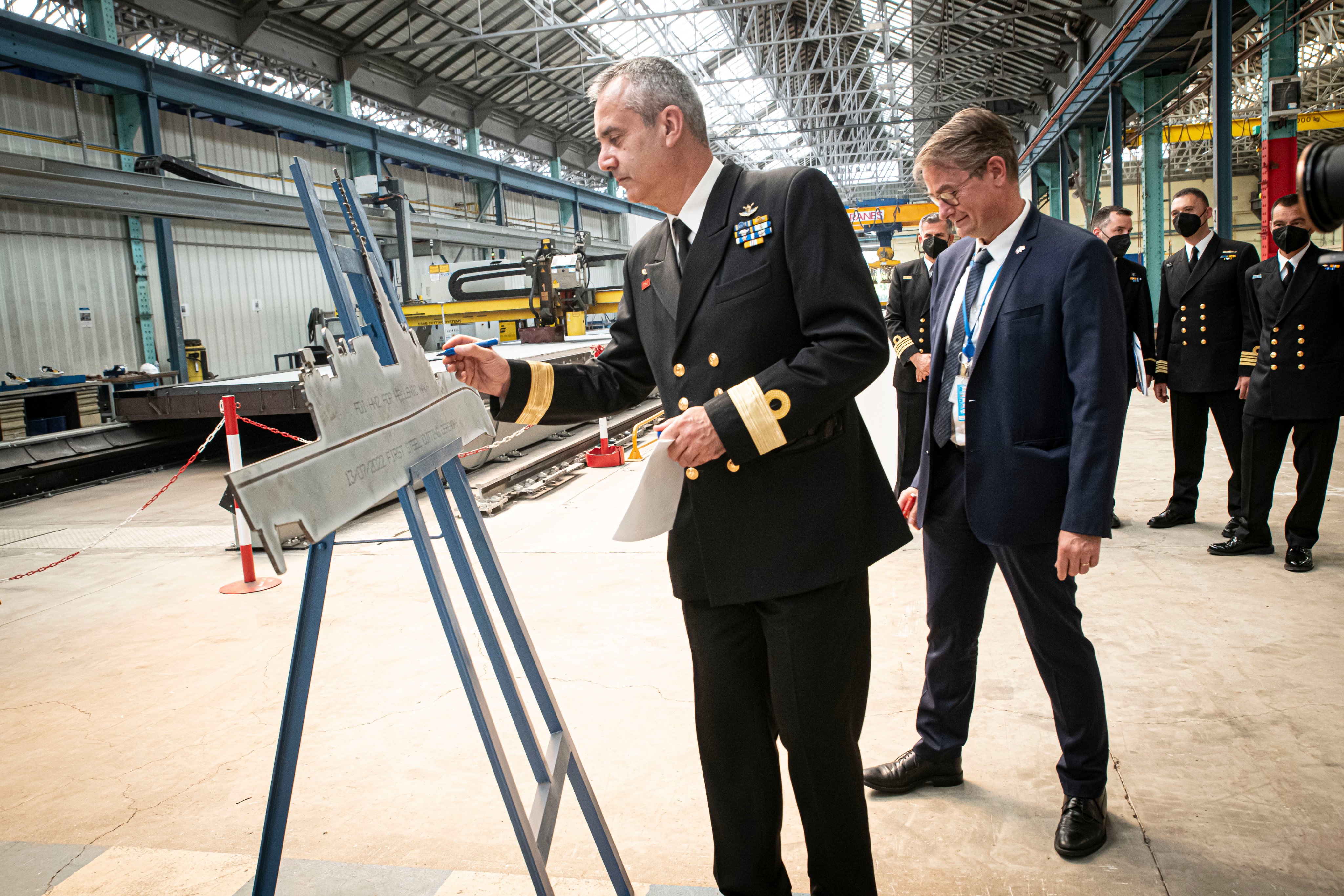 Όπως ανακοινώθηκε από τη Naval Group, η τελετή πραγματοποιήθηκε παρουσία του διευθυντή προγράμματος για τις φρεγάτες του Ελληνικού Πολεμικού Ναυτικού, της Naval Group, Gilles Langlois, όπως και του αρχιπλοιάρχου Θεοχάρη Χατζόπουλου, διοικητή του κλιμακίου του Ελληνικού Πολεμικού Ναυτικού στη Λοριάν.