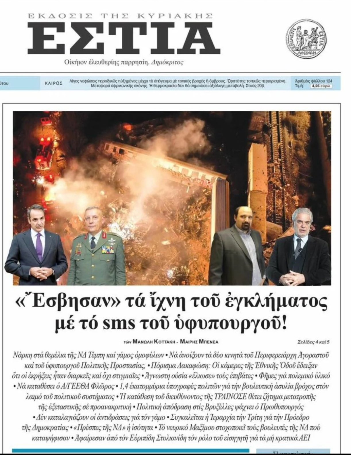 Μια αποκάλυψη για το μπάζωμα στα Τέμπη κάνει σήμερα η εφημερίδα Εστία, η οποία φέρνει στο φως δύο έγγραφα σοκ στην «Διαύγεια» που δείχνουν τον ένοχο για τα Τέμπη.